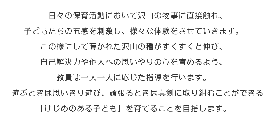現代の幼児教育を実践するだけでなく、昭和26年から続く伝統ある幼稚園として、残していくべき大切なことを子どもたちに継承していきます。